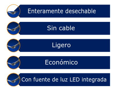 Ahora se puede disponer en segundos de iluminación en las partes más profundas del bolsillo quirúrgico o en cualquier cavidad; SIN necesidad de montajes, partes adicionales/componentes o cables de fibra óptica.